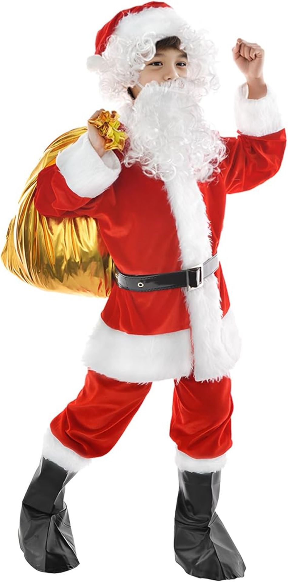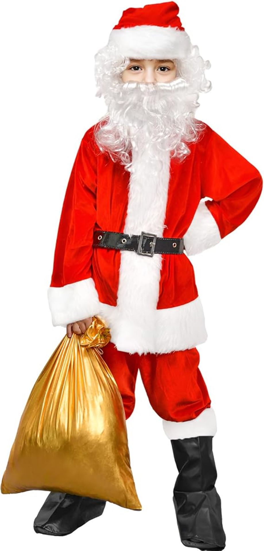 Noel Baba kostümü çocukların hayal dünyasını renklendiren eğlenceli ve şık bir tasarıma sahiptir.