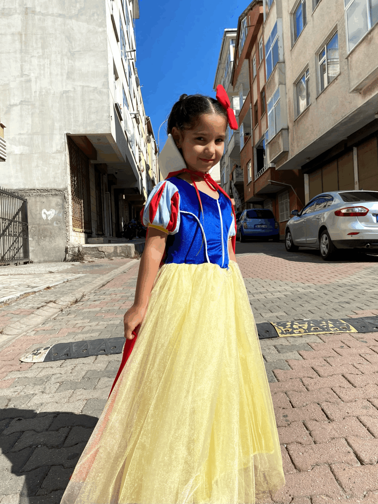 Masalların en sevilen prensesi şimdi seninle! Renkli ve tüllü Pamuk Prenses kostümüyle çocuklar büyülü bir dünyaya adım atıyor.