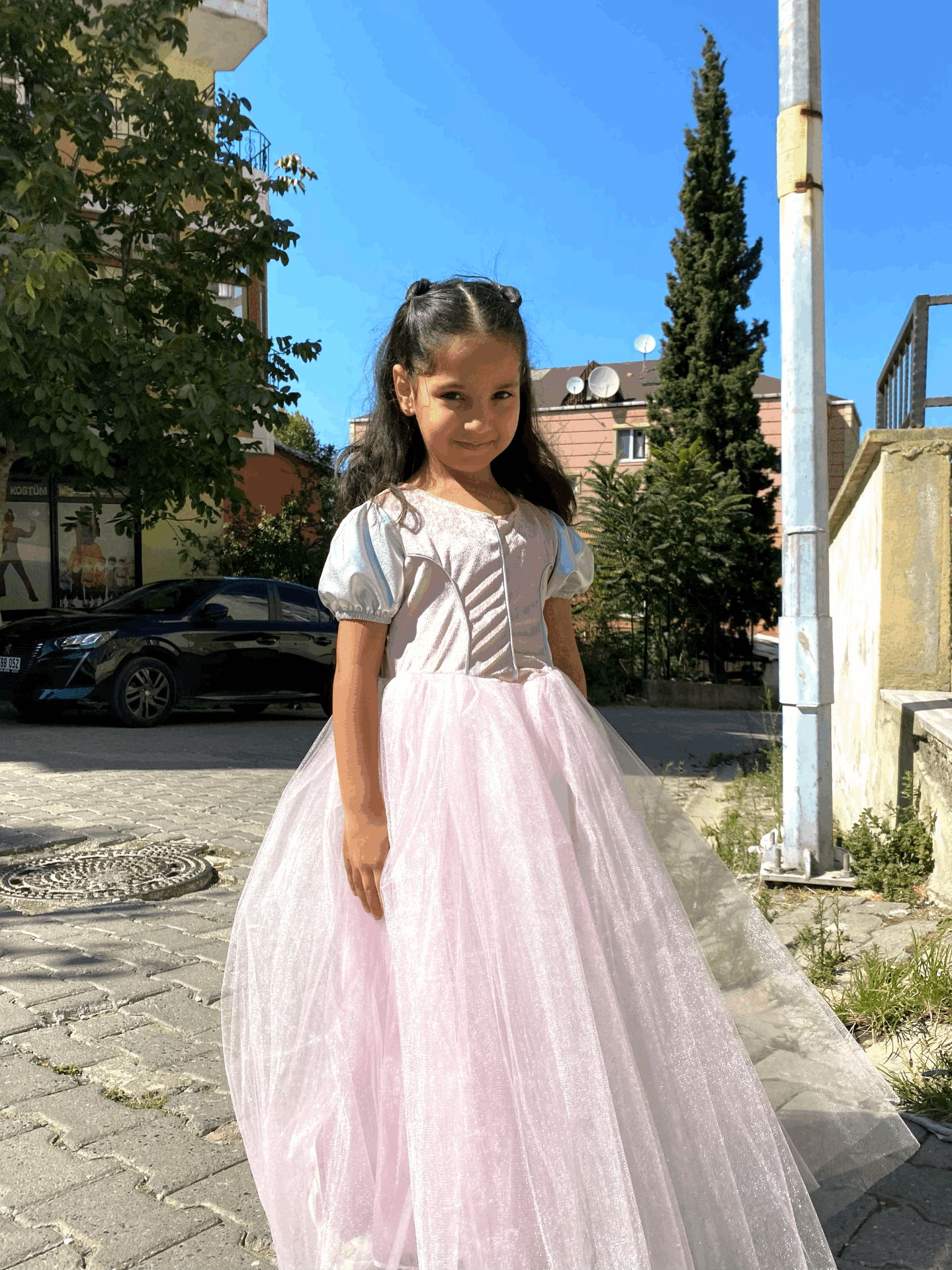 Küçük prensesler için pembenin büyüsü! Işıltılı detaylara sahip bu şık kostüm, hayal gücünü gerçeğe dönüştürür