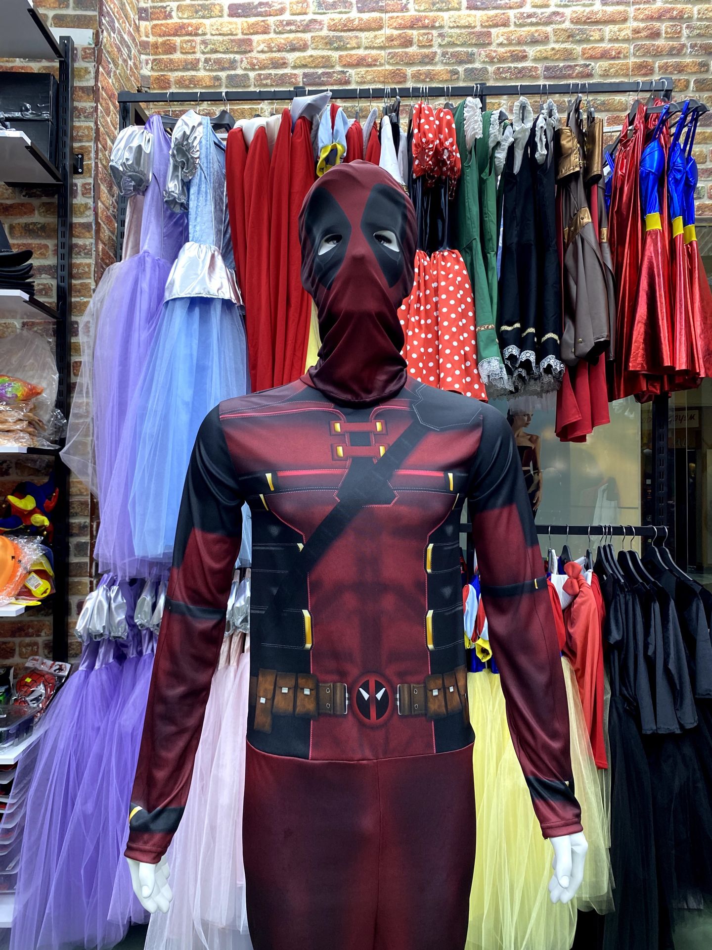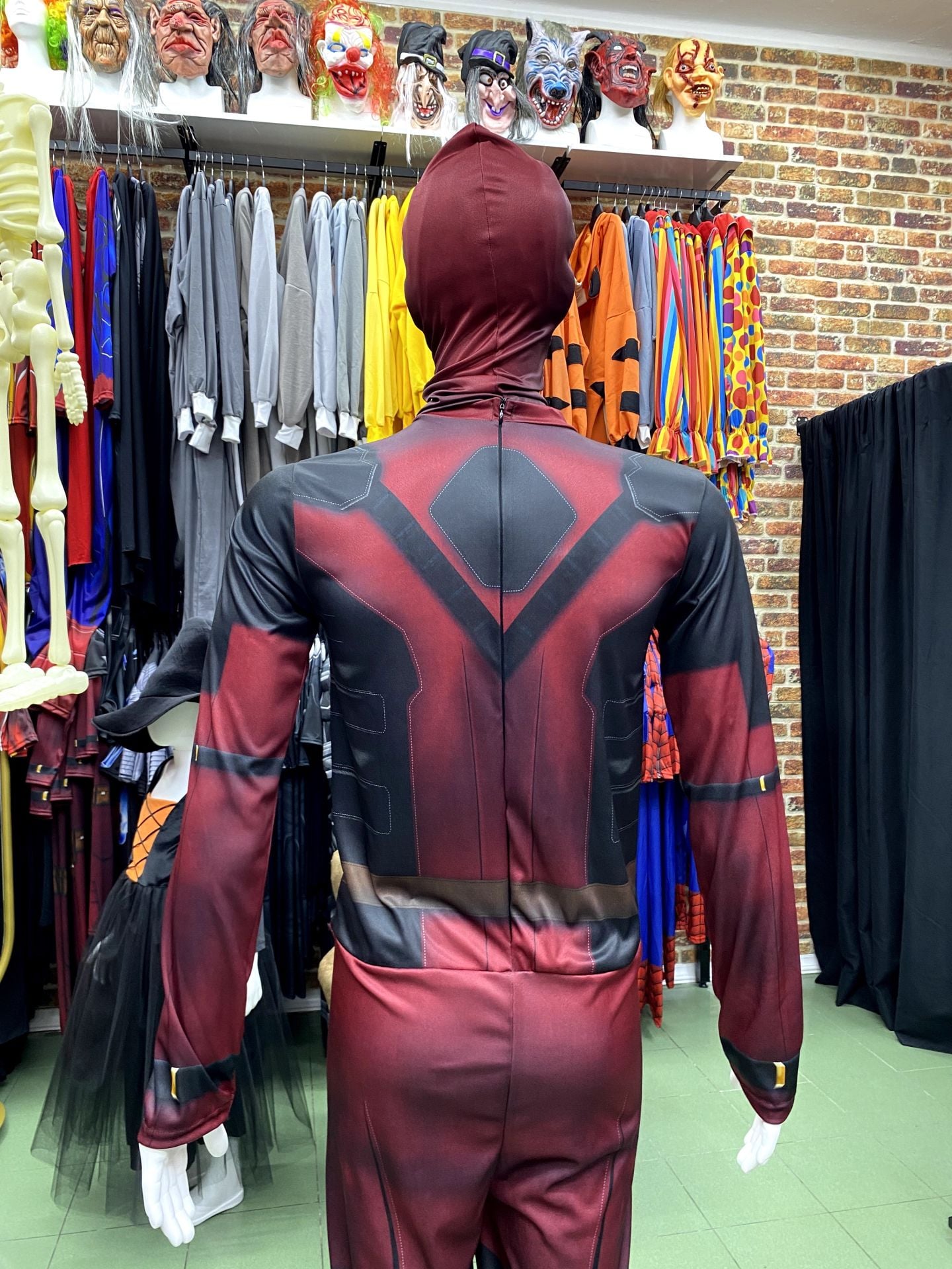 Deadpool kostümü, Marvel evreninin en eğlenceli anti-kahramanı Deadpool'un karakteristik kıyafetini taşıyan bir kostümdür. Kırmızı siyah renklerin kombinasyonuyla dikkat çeken kostüm, hem cosplay etkinlikleri hem de kostüm partileri için mükemmel bir seçenektir. Deadpool hayranları için özel olarak tasarlanmış bu kostüm, dikkat çekici ve eğlenceli bir görünüm sunar.Kostüm tulum ve maskeden oluşmaktadır.