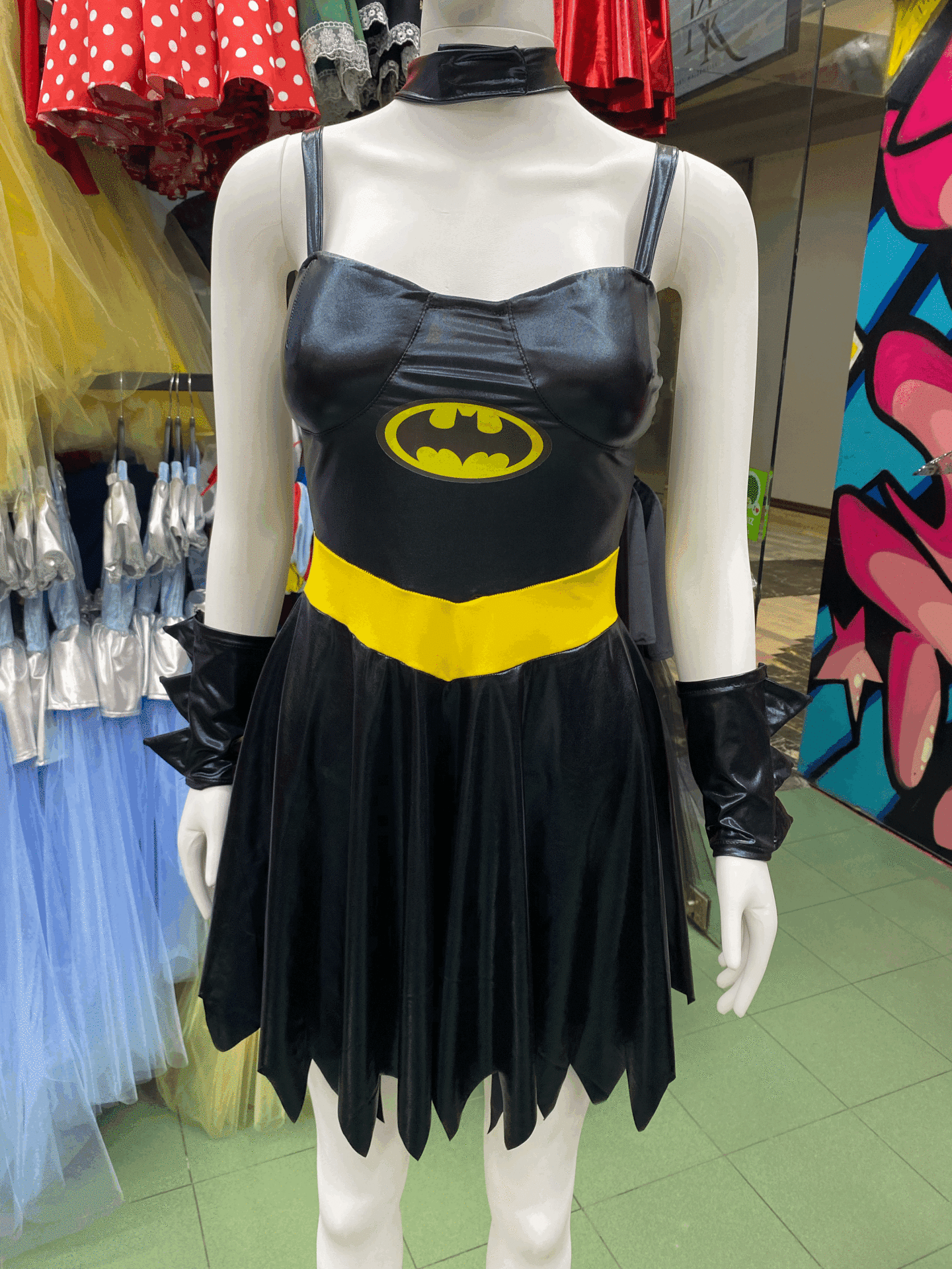 Bu korkutucu ve güçlü kadın Batman kostümü, herkesi etkilemek için tasarlanmıştır. Siyah deri görünümlü kumaştan yapılmış bu kostüm, cesur ve kararlı bir duruş sergilemek isteyen kadınlar için mükemmel bir seçimdir. Efsanevi kahramanı canlandırmak isteyenler için ideal bir tercihtir.Kostüm, elbise, pelerin, maske ve bileklikten oluşmaktadır.