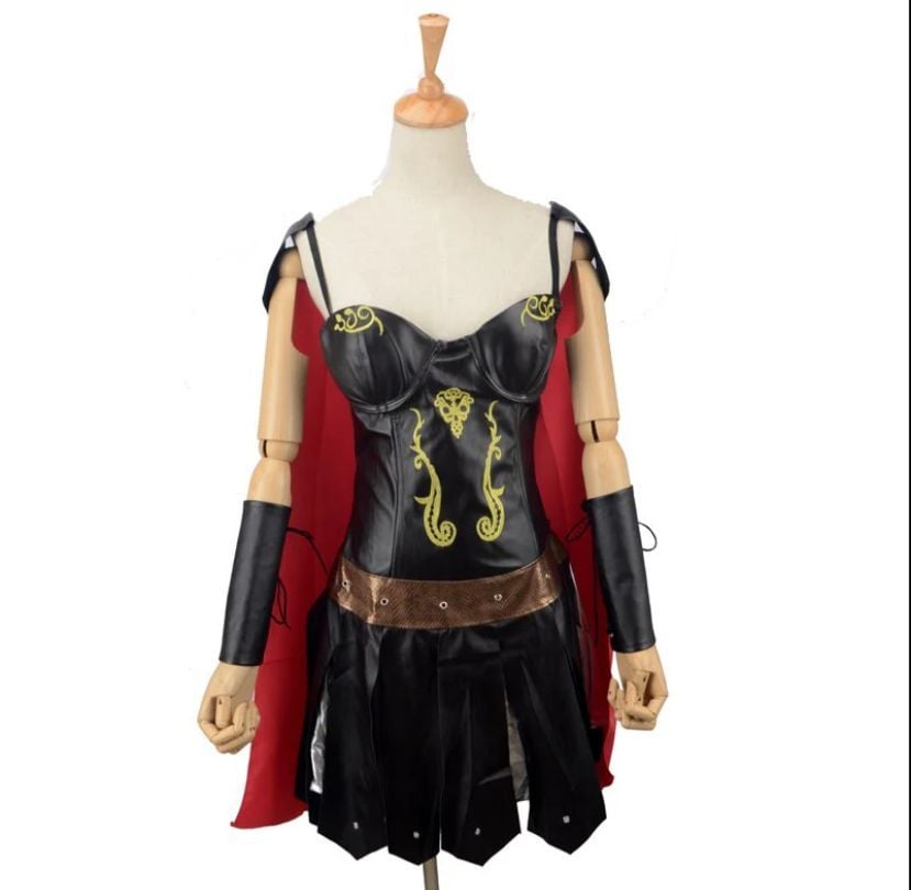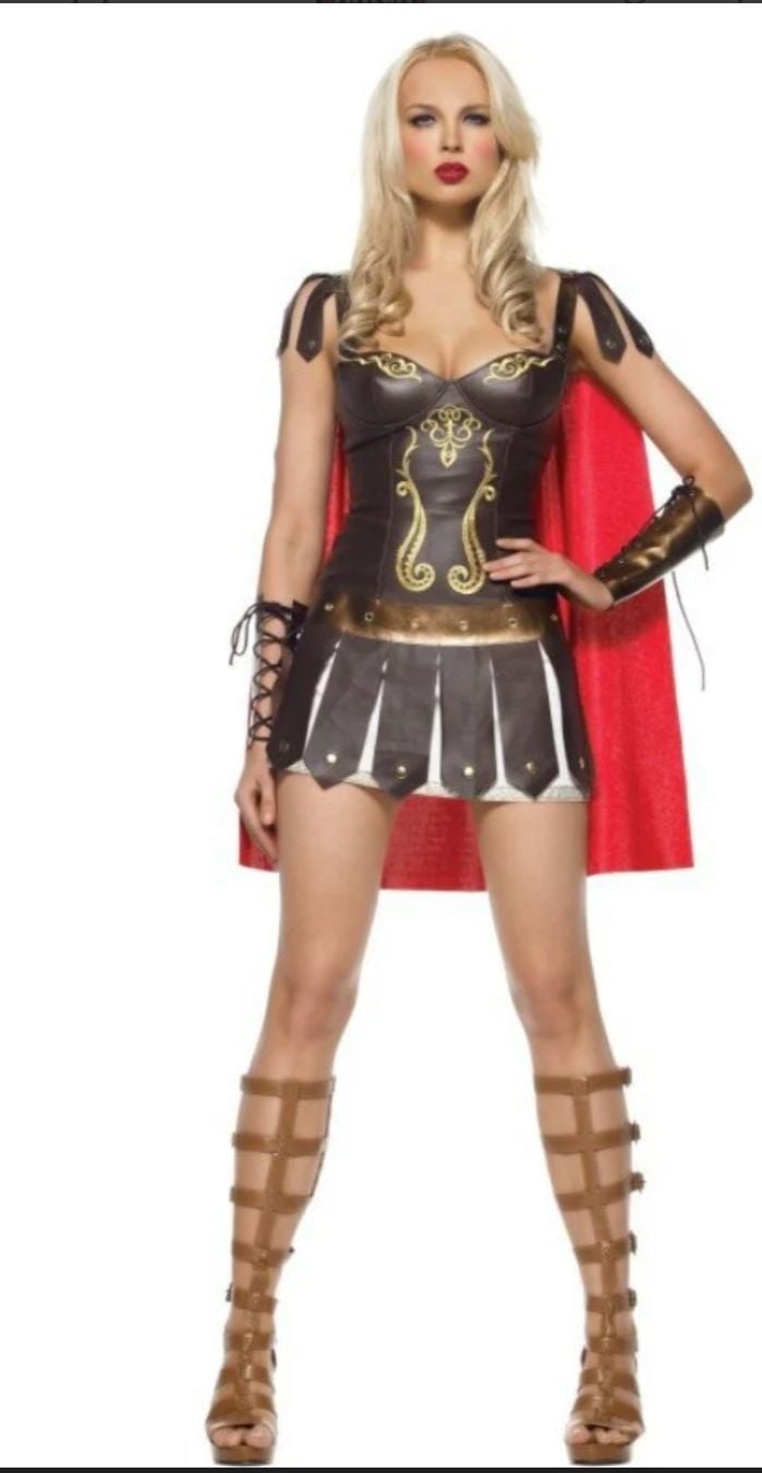 Bu eşsiz kadın gladyatör kostümü, cesur ve güçlü bir görünüm için idealdir. Metalik altın detayları ve antik tarzı tasarımı ile dikkat çeker. Bu kostüm, birinci sınıf kalitede malzemelerden üretilmiştir ve her türlü kostüm partisi veya tema partisi için mükemmel bir seçimdir. Hemen satın alarak cesur ve iddialı bir tarz yaratın! Kostüm şortlu pelerinli elbise ve bileklikten oluşmaktadır.
