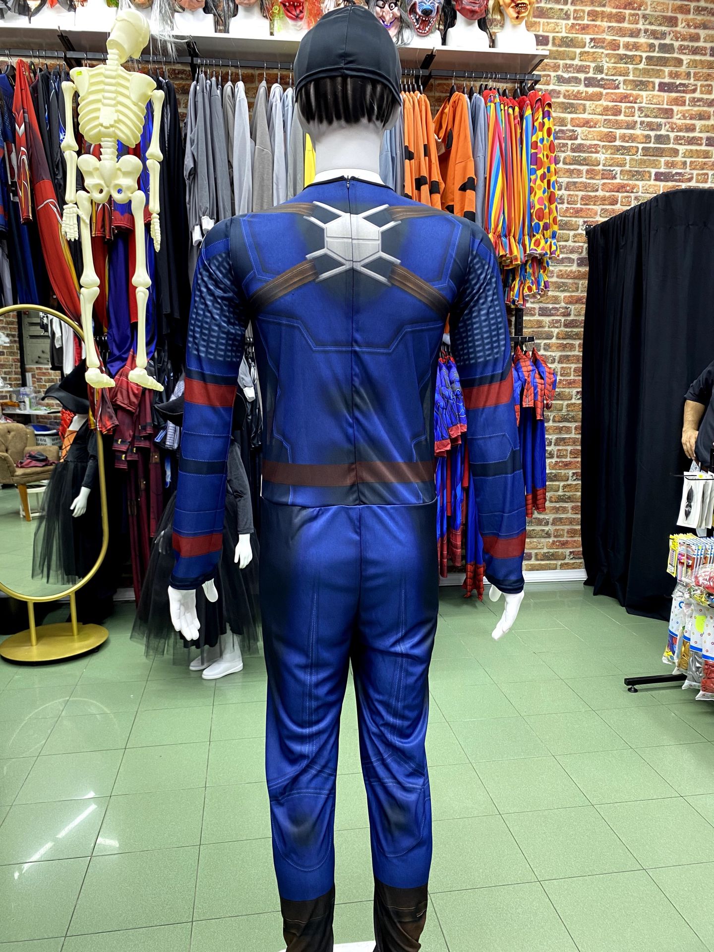 Kaptan Amerika kostümü, Amerika'nın efsanevi kahramanıyla birebir aynı detaylara sahiptir. Kırmızı, beyaz ve mavinin muhteşem uyumunu yansıtan bu kostüm, partilerde ve kostüm partilerinde göz alıcı bir seçenektir. Kaliteli malzemelerden üretilmiş olan bu kostüm, her yaş grubundan hayranın beğenisini kazanacak.Kostüm tulum ve maskeden oluşmaktadır.