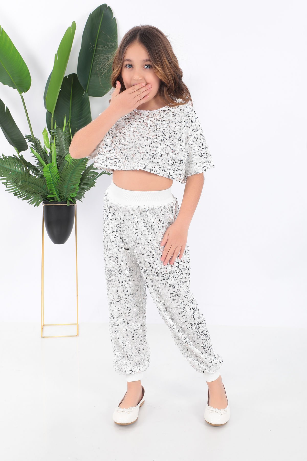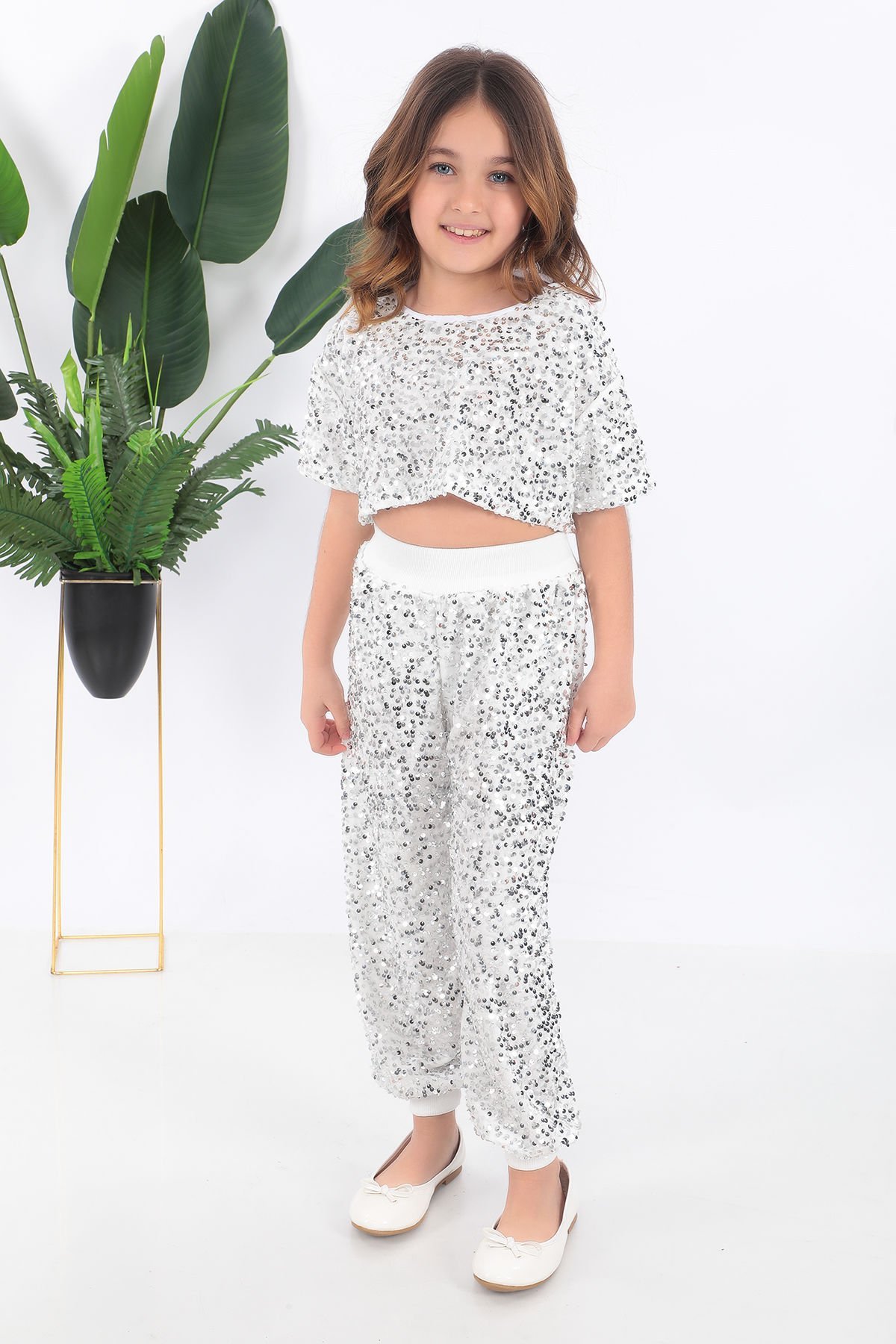- Beyaz renkli, şık ve zarif tasarımıyla dikkat çeken kız çocuk t-shirt.- Payet detayları ile göz alıcı bir görünüm sunan bu kostüm, çocukların özel günlerinde parlamasını sağlar.- Saten materyali sayesinde yumuşak dokunuşu ve konforlu yapısıyla çocukların rahat hareket etmesine olanak tanır.- Türkiye'de üretilmiş olması, yerel üretim kalitesini ve sürdürülebilirliği destekler.- Çocukların yaş grubuna uygun olarak tasarlanmıştır; hem şıklığı hem de rahatlığı ön planda tutar.Kostüm kısa tşört ve pantolondan oluşmaktadır.