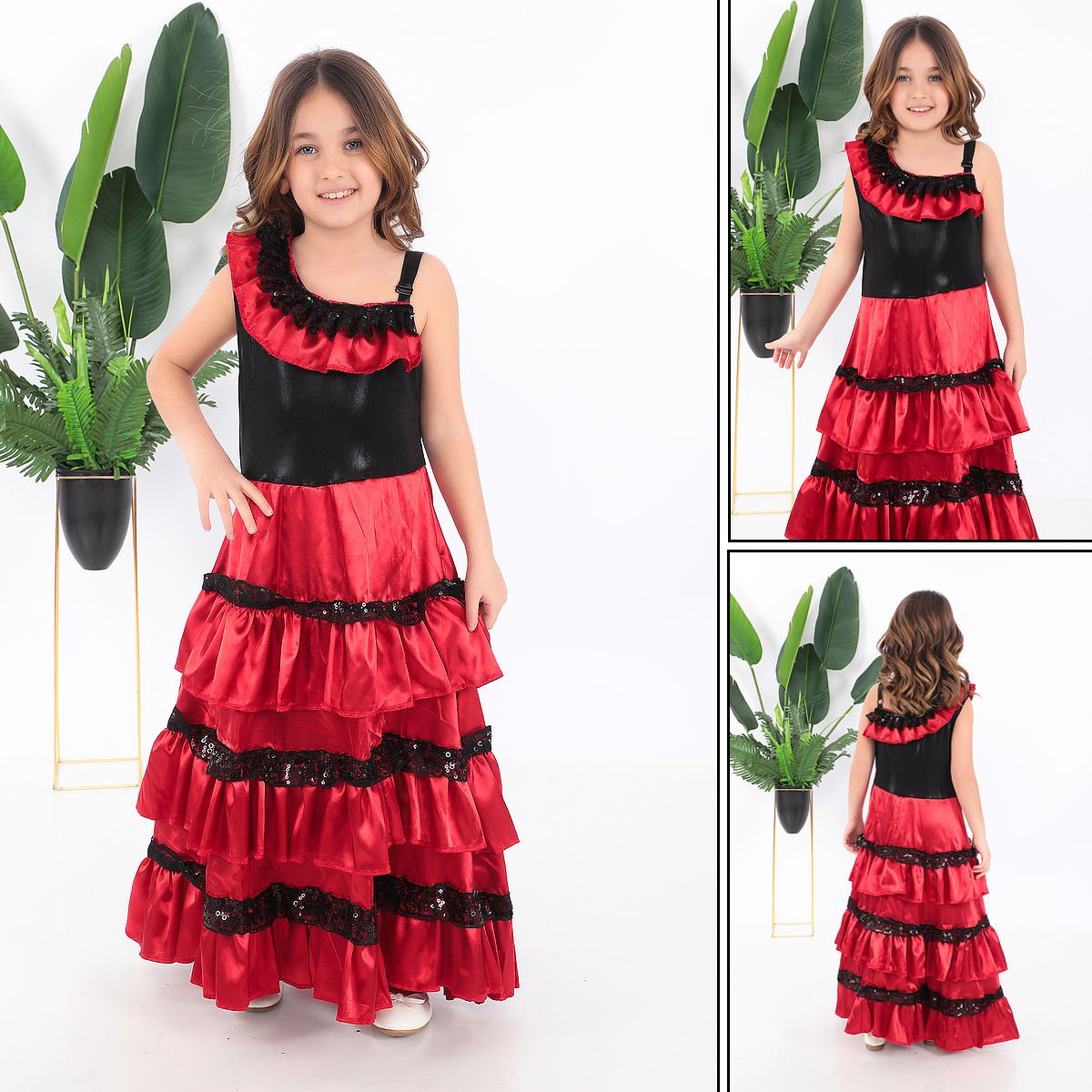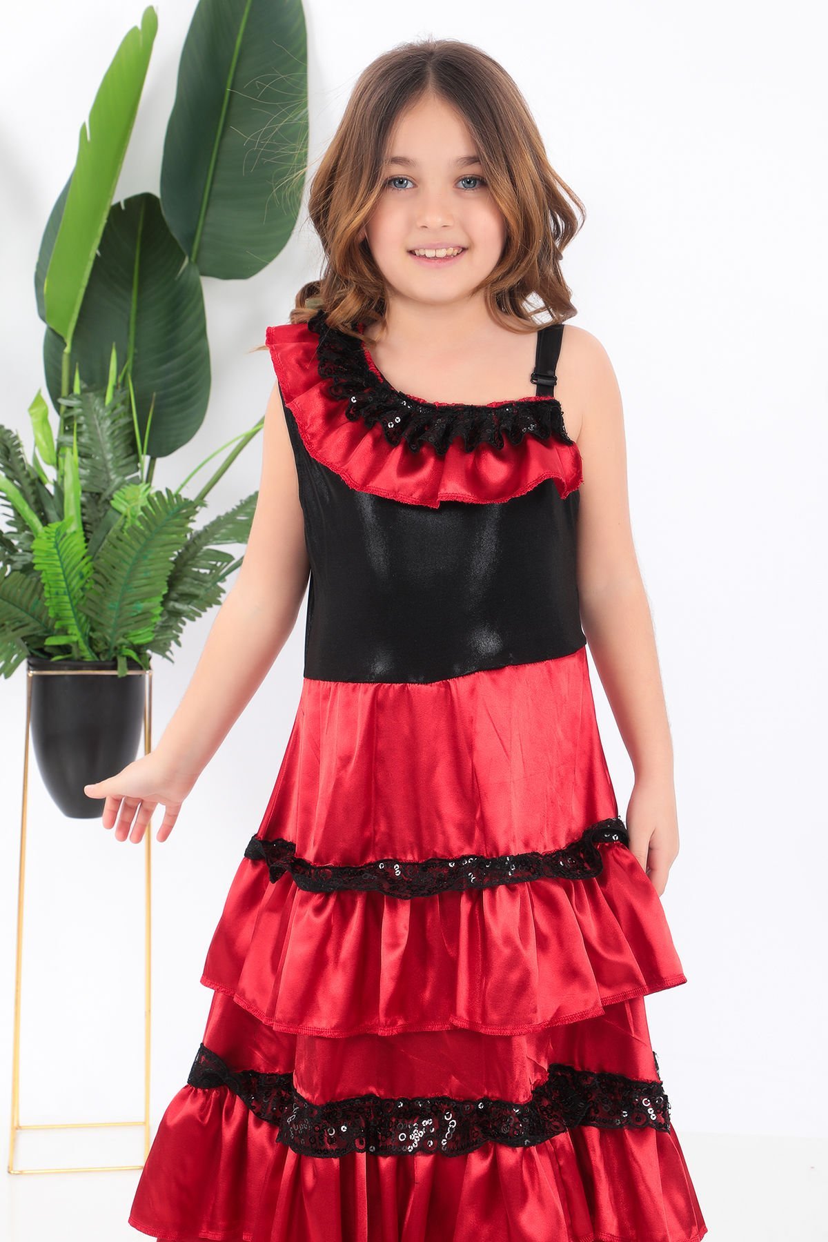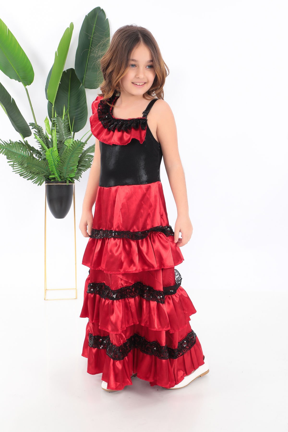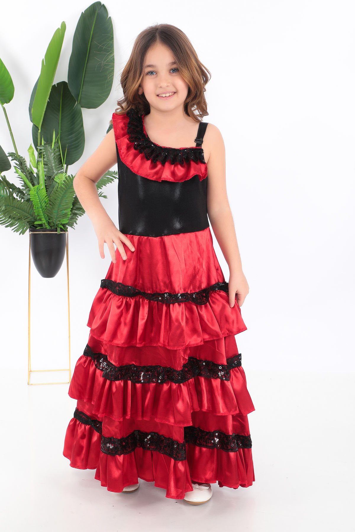 Saten kumaştan üretilmiş olup yumuşak dokusuyla çocukların konforunu ön planda tutar.Çocuk yaş grubuna uygun olarak geliştirilmiş yapısıyla güvenli ve rahat bir kullanım sunar.Kostüm askılı elbiseden oluşmaktadır.
