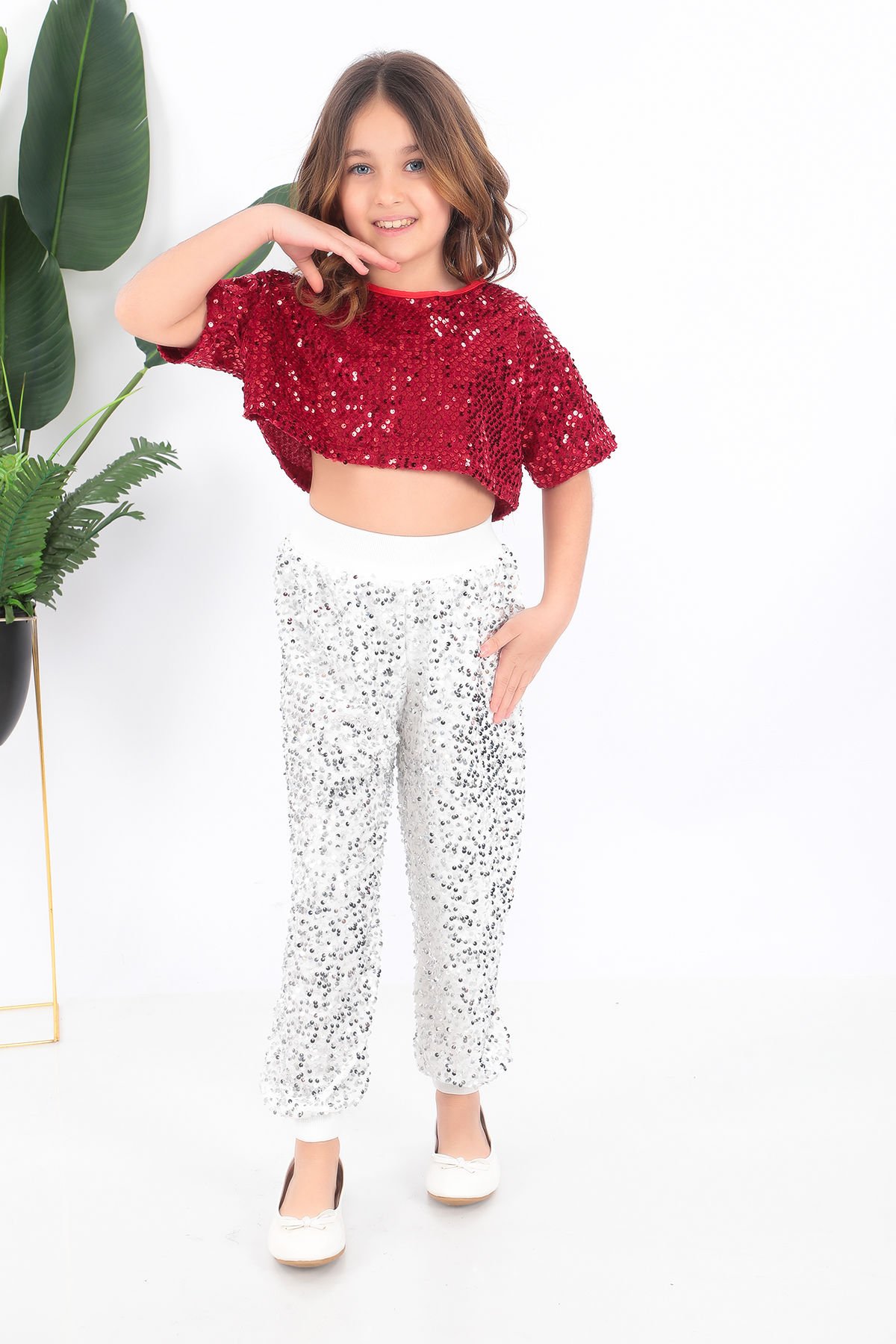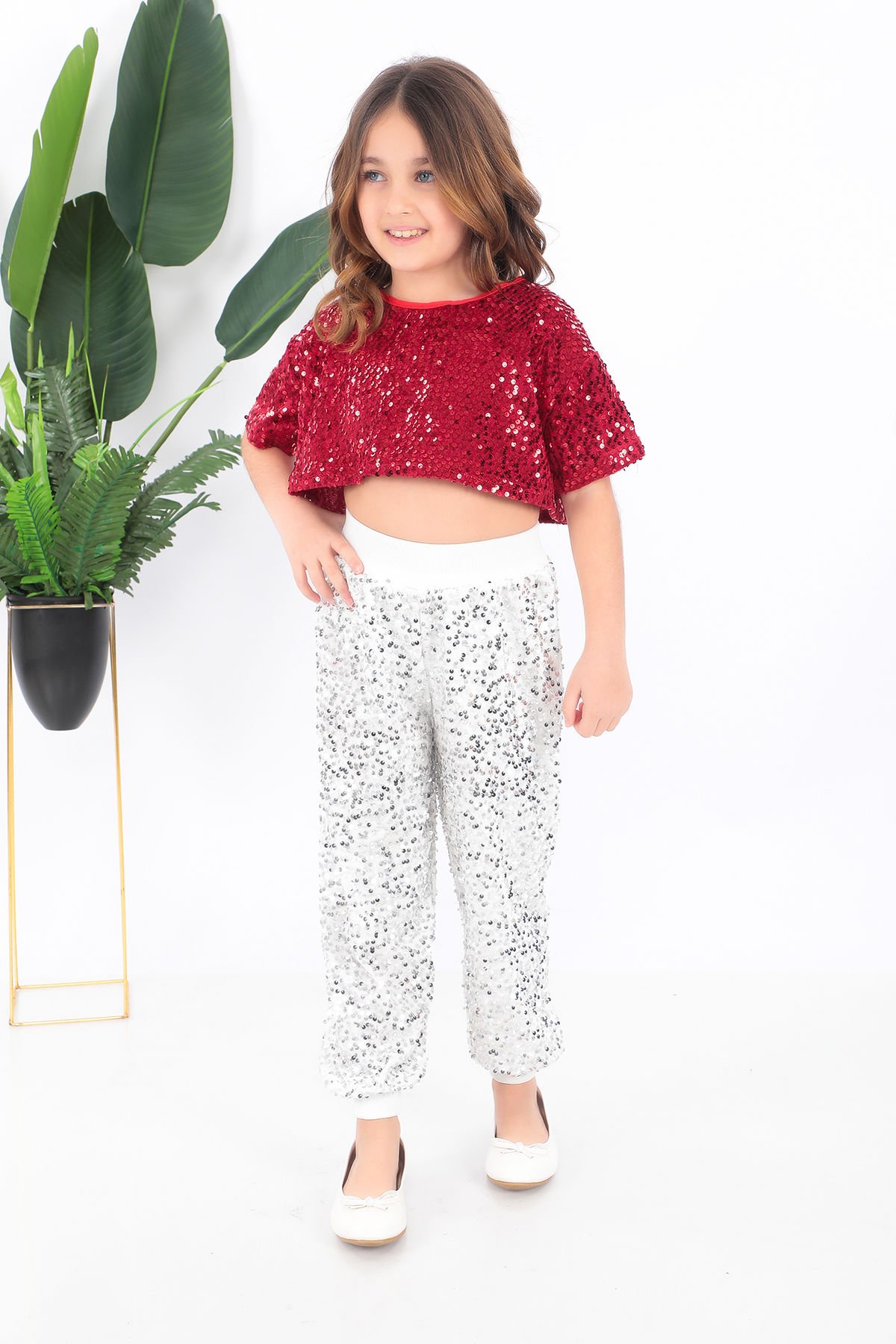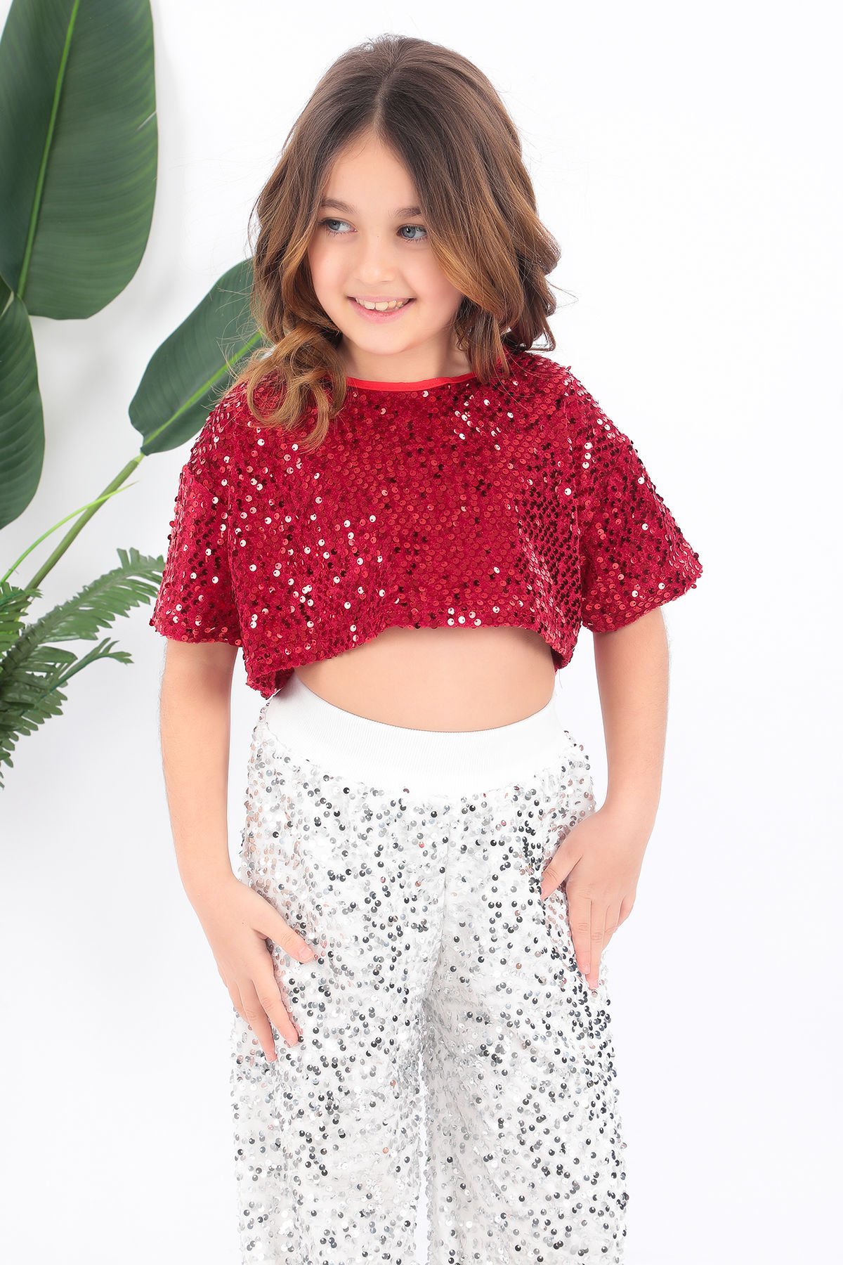 - Parlak pul payet detaylarıyla süslenmiş, çocukların enerjisini yansıtan kırmızı ve beyaz renklerdeki kısa tişört.- Hem şık hem de rahat bir kullanım sunan saten kumaştan üretilmiştir.- Çocukların hareket özgürlüğünü kısıtlamayan, esnek yapısıyla konforlu bir deneyim sağlar.- Türkiye'de üretilmiş olup yerel üretim kalitesinin örneğidir.- Her yaş grubuna uygun tasarımıyla minik dansçıların gardırobunun vazgeçilmez parçasıdır.Kostüm kısa tişört ve pantolondan oluşmaktadır.