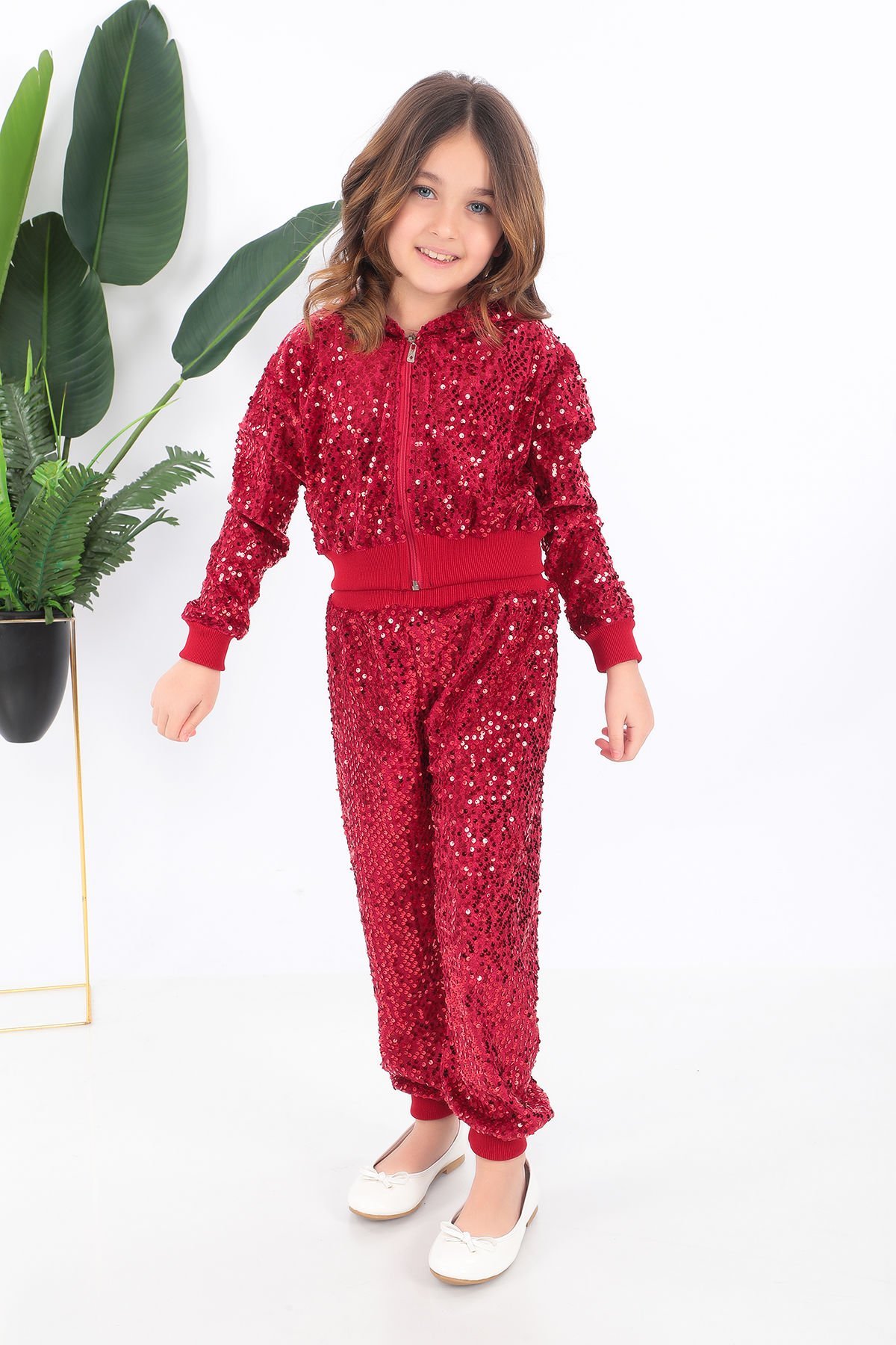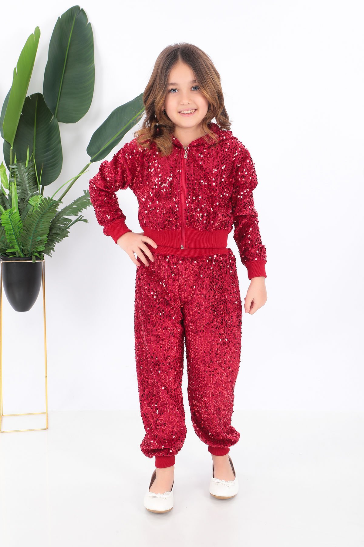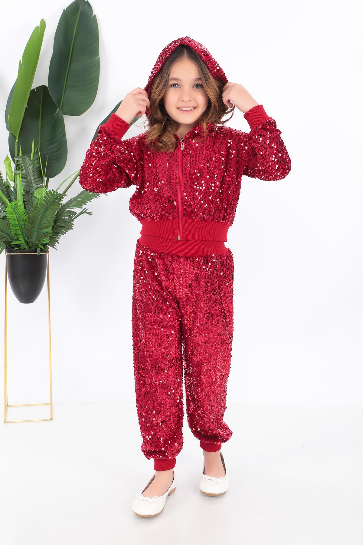 - Kız çocukları için özel olarak tasarlanmış, canlı kırmızı renkli kapşonlu payet detaylarıyla süslenmiş dansçı kostümü.- Çocukların rahat hareket edebilmesi için ideal olan saten materyalden üretilmiştir.- Türkiye'de üretilmiş olup yerel malzemelerle sürdürülebilir moda anlayışını destekler.- Her yaş grubuna uygun olarak tasarlanmıştır; böylece minik dansçılar da büyükler kadar şık görünür.Kostüm kapşonlu sweatshirt ve pantolondan oluşmaktadır.