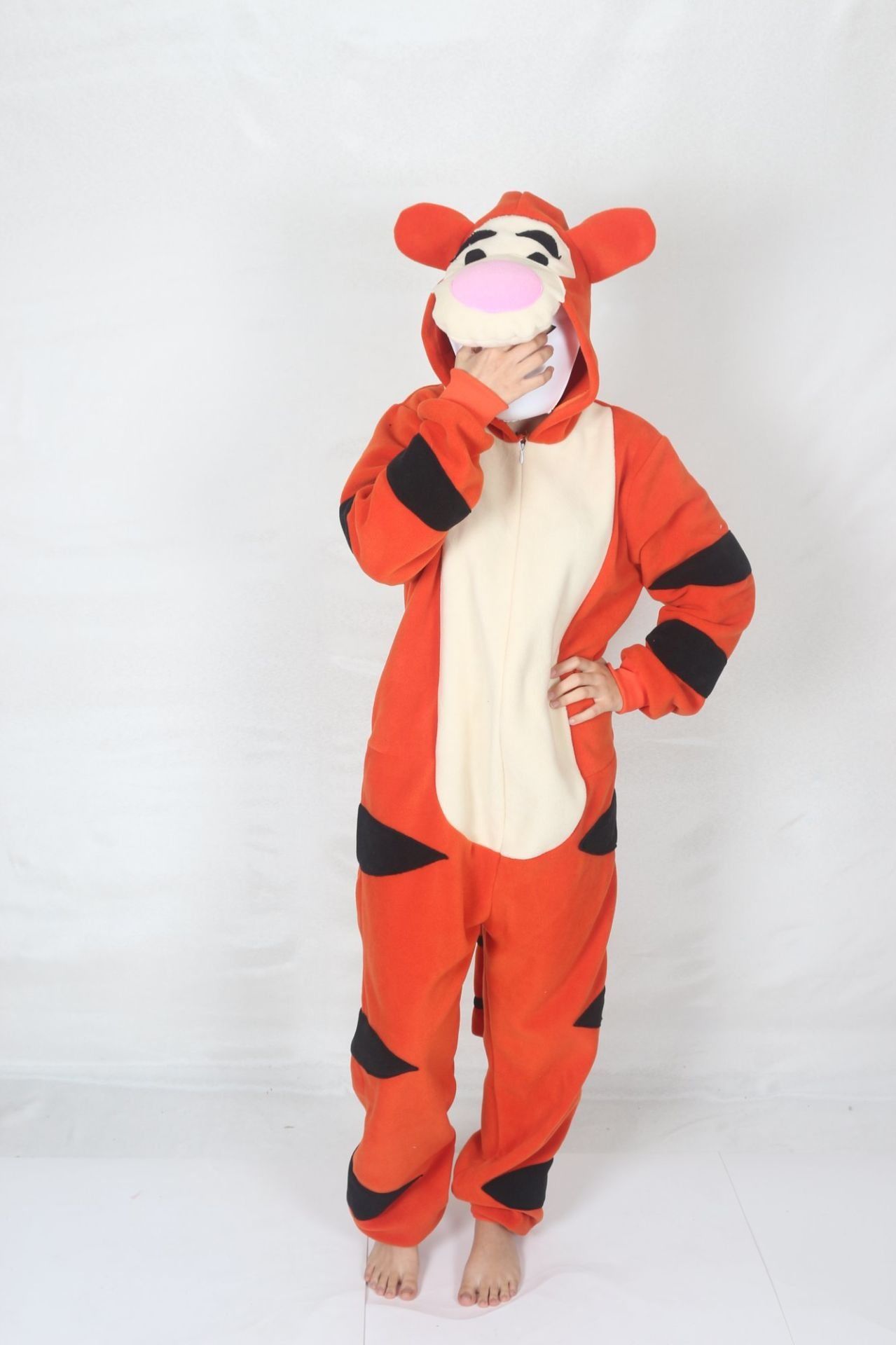 Bu muhteşem yetişkin kaplan hayvan kostümü ile partiye damga vurun! Yumuşak kumaşı ve gerçekçi detayları ile dikkat çeken bu pijama kostümü, konfor ve şıklığı bir arada sunuyor. Eğlenceli partiler, kostüm partileri veya pijama geceleri için mükemmel bir seçenek. Göz alıcı tasarımıyla dikkatleri üzerinize çekin ve partinin en gözde kostümü olun!